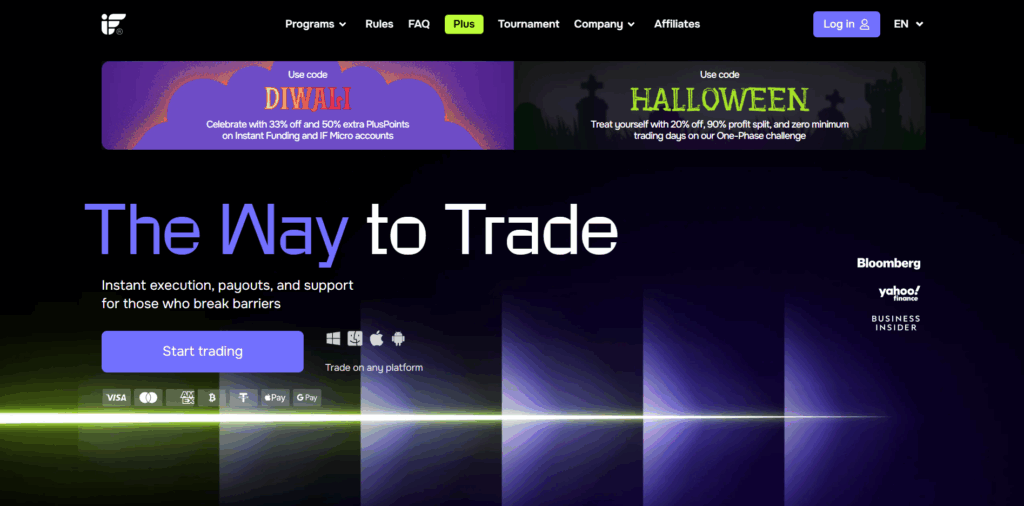 Instant Funding gives traders instant access to capital with no evaluation phases. Fast approval, daily payouts, and flexible account sizes for traders who want true trading freedom.